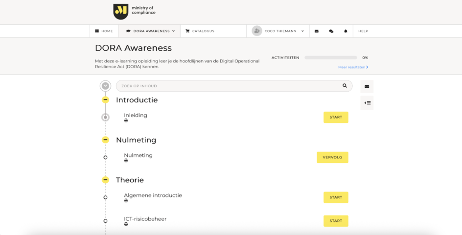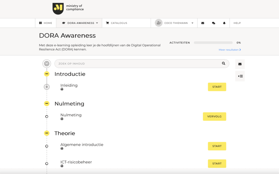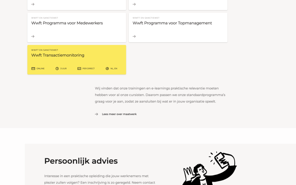 The Ministry of Compliance helpt (financiële) professionals die hun vakkennis up-to-date willen houden en op de hoogte willen blijven van wet- en regelgeving. Wij maken de vertaalslag van regels naar praktische handvatten en helpen je gemakkelijk te voldoen aan de wettelijke opleidingseisen. Onze opleidingen zijn te volgen waar en wanneer jou uitkomt, in een aantrekkelijke online leeromgeving. Want leren hoort leuk te zijn. Zelfs als het verplicht is.