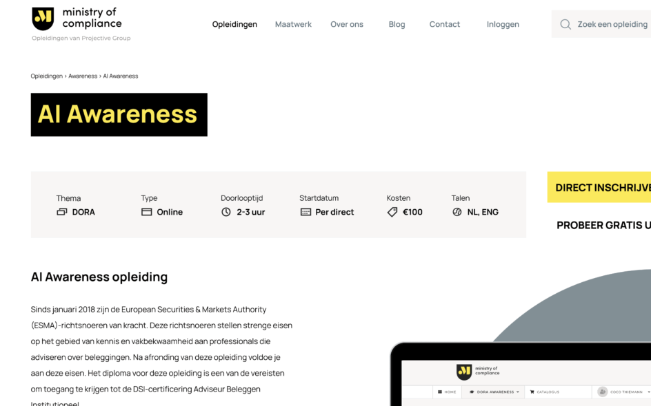 The Ministry of Compliance is het opleidingsinstituut van Projective Group. In onze opleidingen maken wij de vertaalslag van wet- en regelgeving naar praktische handvatten.
